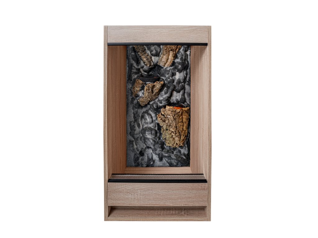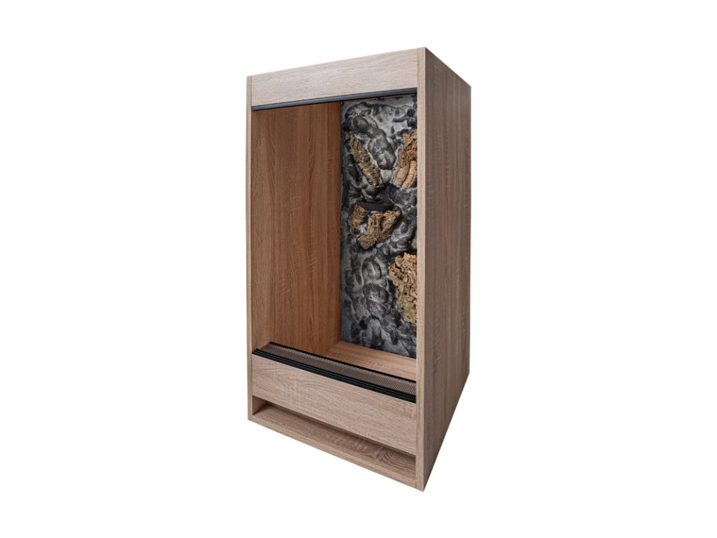 Medzi hlavné výhody patrí veľká odolnosť týchto terárií, výborná tepelná izolácia a v neposlednom rade jednoduchá inštalácia doplnkov. K týmto teráriám ponúkame opieskované a modelované 3D steny. Súčasťou môže byť skrinka, alebo stolík.
